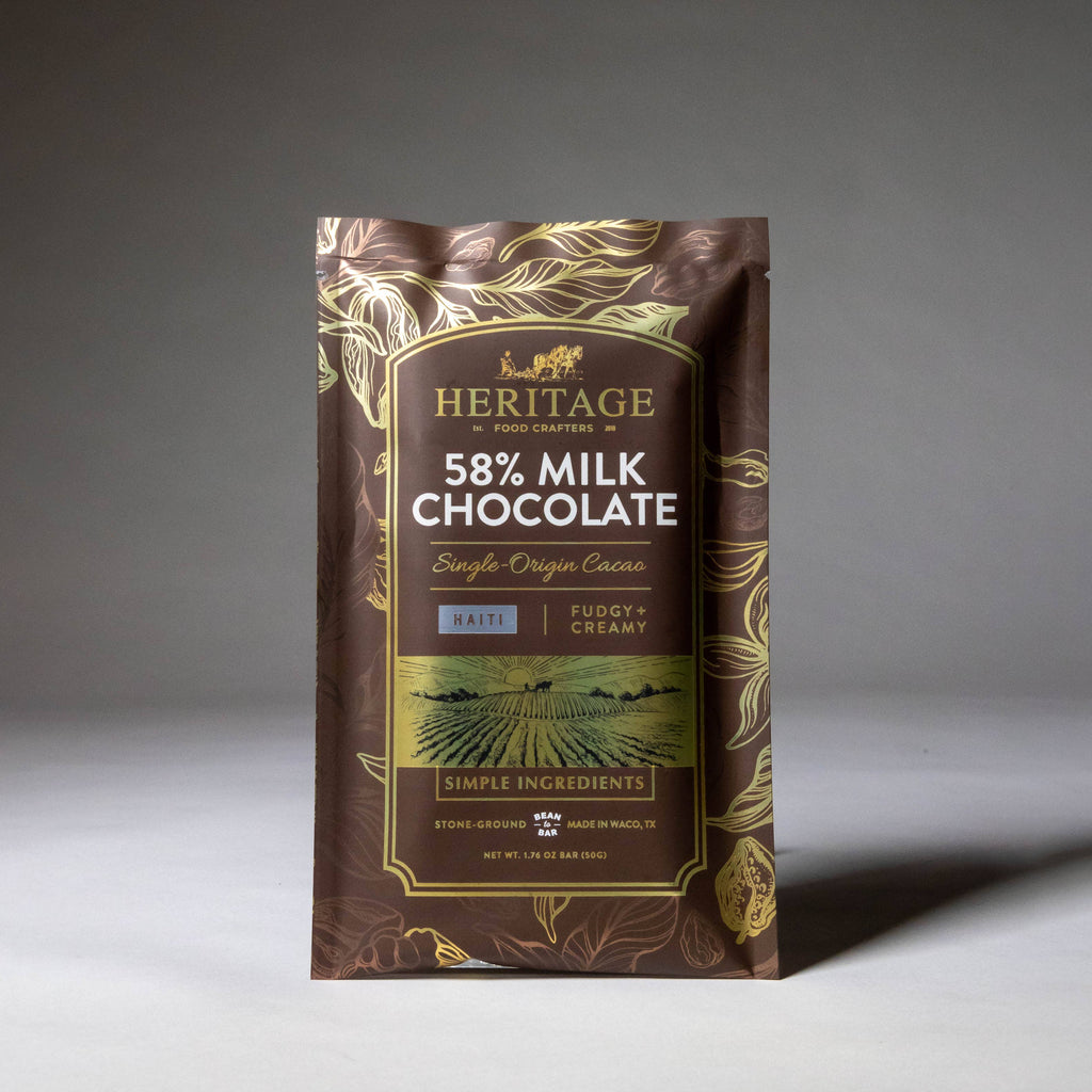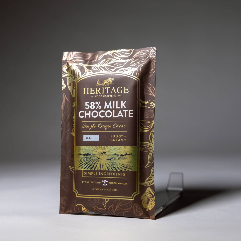 For our Dark Milk chocolate bar, we have chosen our Haitian cacao which creates a rich and flavorful base chocolate and have combined it with a whole milk powder which adds a full-bodied creaminess to the chocolate. Our Dark Milk chocolate contains roughly 2x the cacao found in commercial milk chocolates, which gives a perfectly balanced sweetness and a richness not usually obtained from typical milk chocoles.