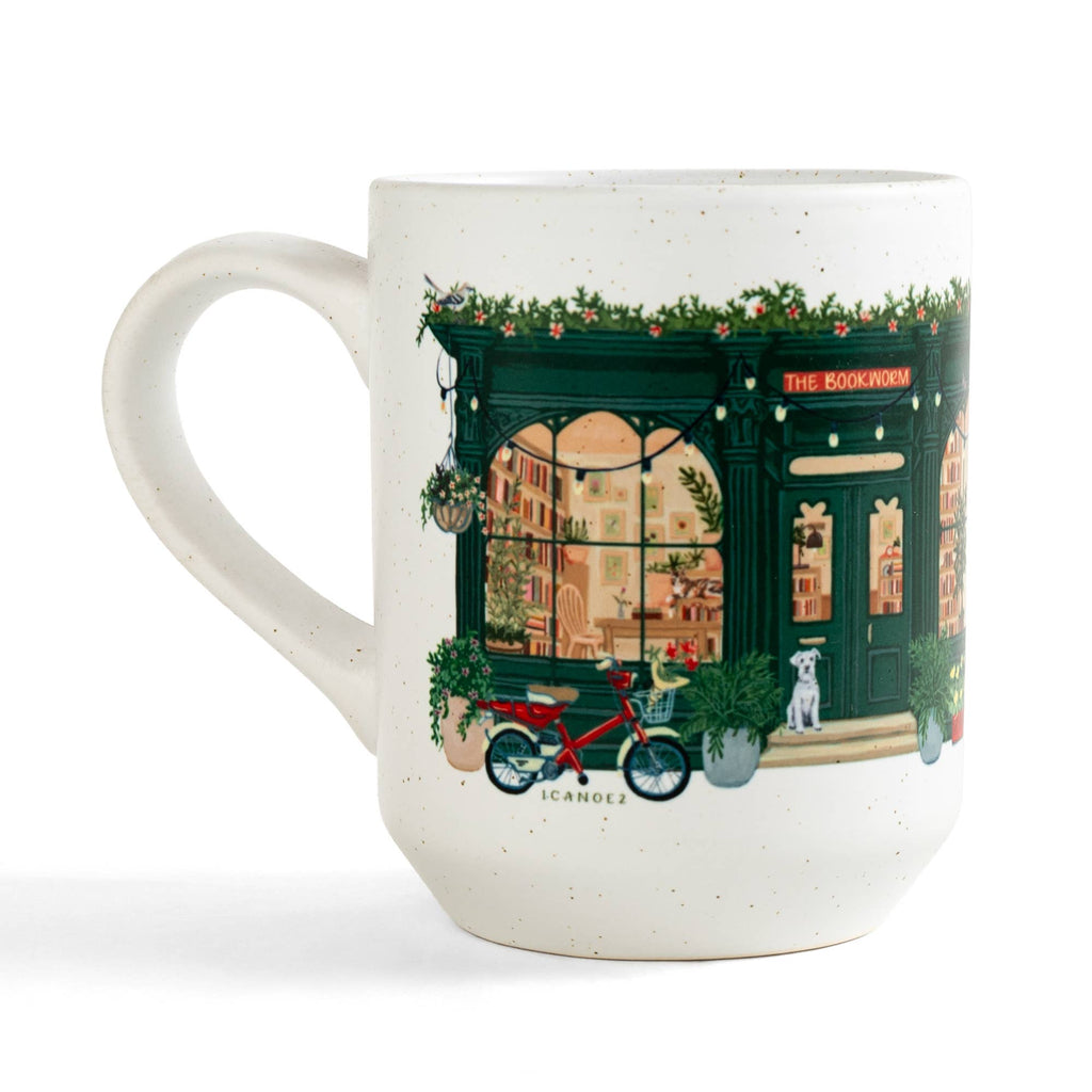 Sip your favorite brew while dreaming of cozy bookshop days! This bookstore ceramic mug features a hand-illustrated bookshop scene wrapped around the mug, complete with glowing windows, lush greenery, and a peek inside the perfect literary escape. Ideal for coffee, tea, or hot cocoa, this charming mug makes a thoughtful gift for book lovers, librarians, and cozy readers who can never have too many books—or mugs!