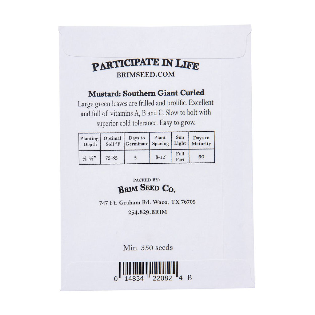Large, green leaves are frilled and prolific. Excellent and full of vitamins A, B and C. Slow to bolt with superior cold tolerance. Easy to grow. 60 days