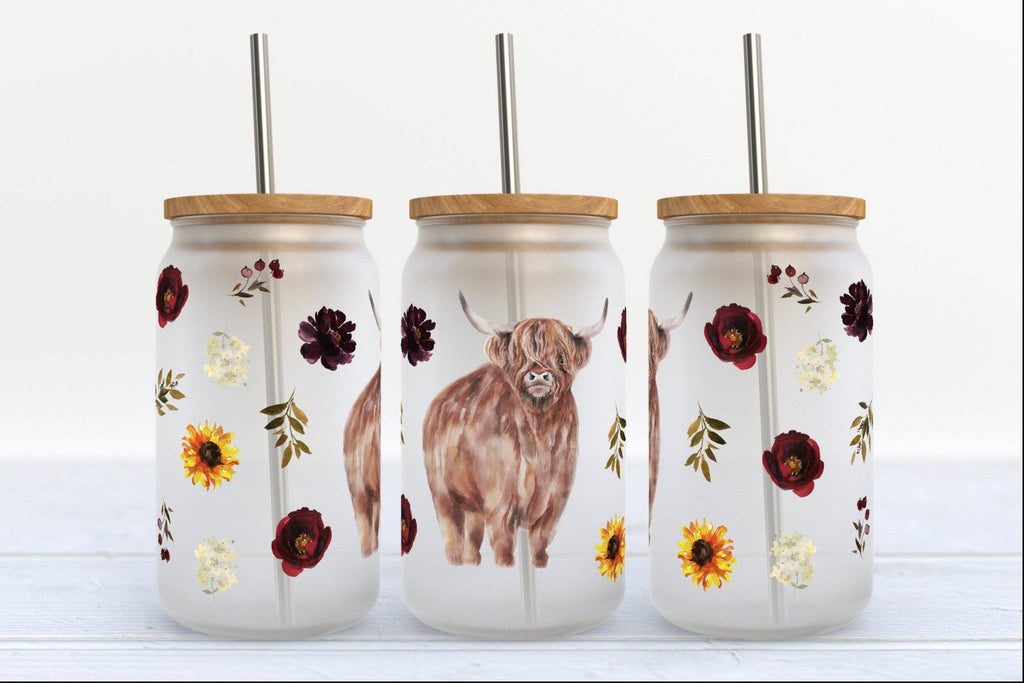 * 16 ounces * Classic Can shape * Frosted glass * Clear Glass * Includes bamboo lid with silicone ring and stopper and metal straw.