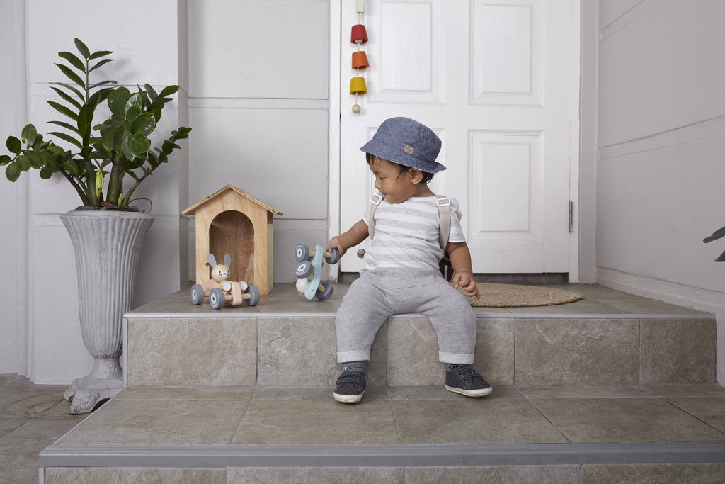 Get in the race car with these fast bunny and chicken! This vehicle comes with a vintage race car theme and features a turning wheel that gives the same movement as a real race car when turning around.