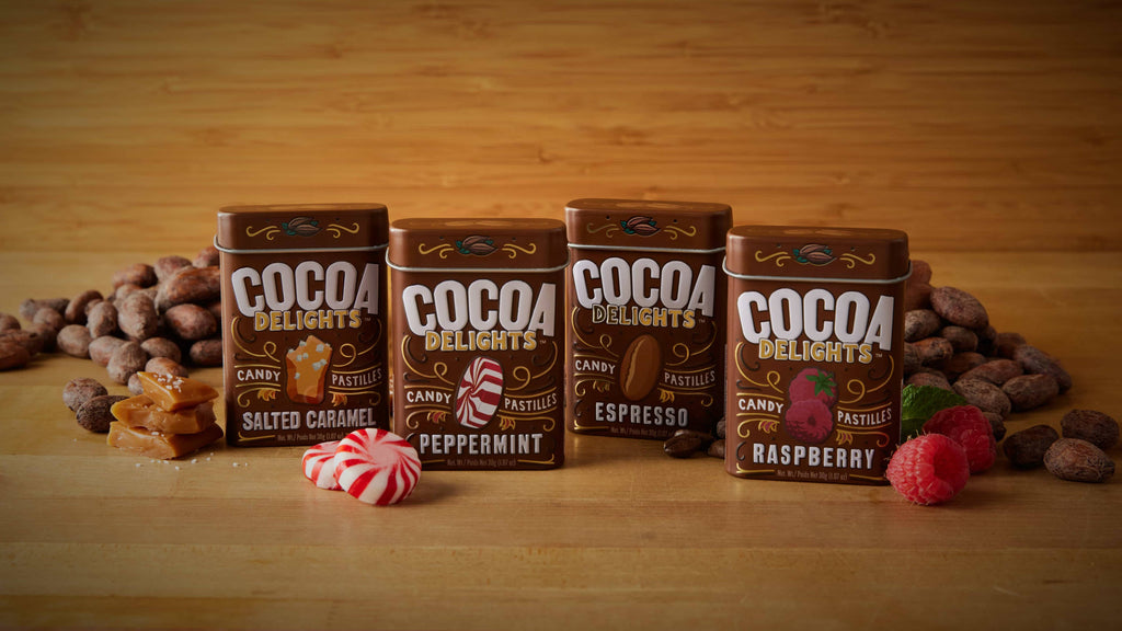 Pure Cocoa Bliss! Our new Cocoa Delights are made with real dutch cocoa and all natural flavors for a rich and authentic taste. A great treat for the secret chocoholic in all of us! Available in four delicious blends including Salted Caramel, Espresso, Raspberry and Peppermint flavors.