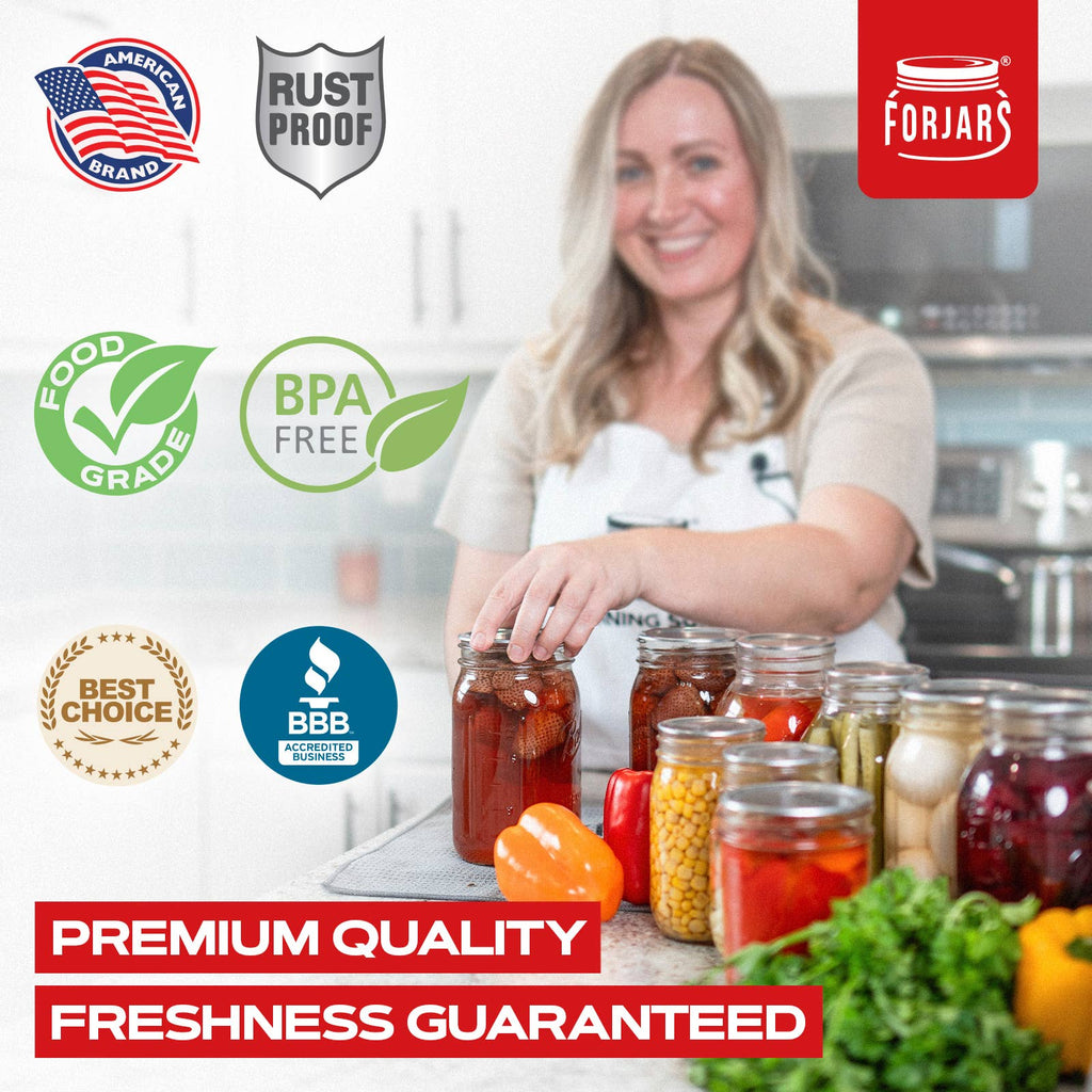 Preserve your food with FORJARS Canning Lids. These lids provide a trusted seal that keeps oxygen out, ensuring your food stays fresh and delicious. Ideal for canning jam, pickles, or meat, these lids maintain the quality of your preserves.