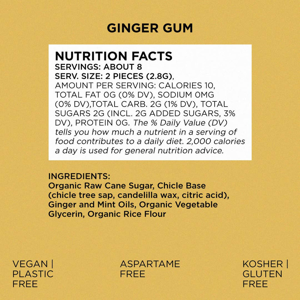 If you love ginger like we love ginger, get ready for the perfect chew. Our delicious Ginger gum contains all of the zest of fresh ginger with none of the synthetic plastic, flavors, or colors found in most conventional gum.