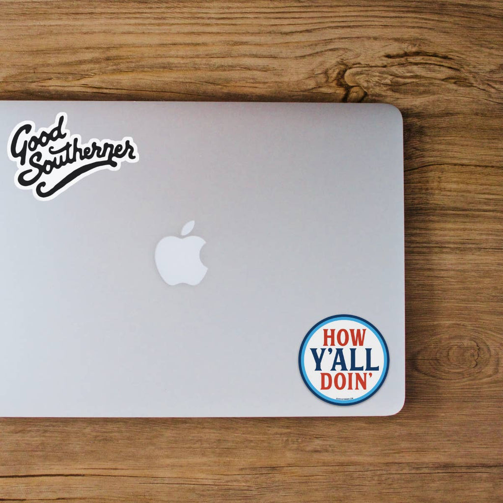 Good Southerner makes fun, colorful stickers and socks loaded with Southern charm. Our premium stickers are high-quality and made in the USA. They won’t fade, crack, or peel, and they’re waterproof! Perfect for gift shops, boutiques, museum shops, bookstores, sports & outdoor stores, florists, pharmacies, stationery stores, mercantile & general stores, grocery stores, arts & craft stores, coffee shops, hardware stores, and more! We are very popular in states like Tennessee, Alabama, Kentucky, South Carolina, North Carolina, Georgia, Louisiana, Mississippi, Texas, Arkansas, Oklahoma, Florida, and Virginia, but we’re not just for Southern states as we currently have retail customers in more than 40 states!