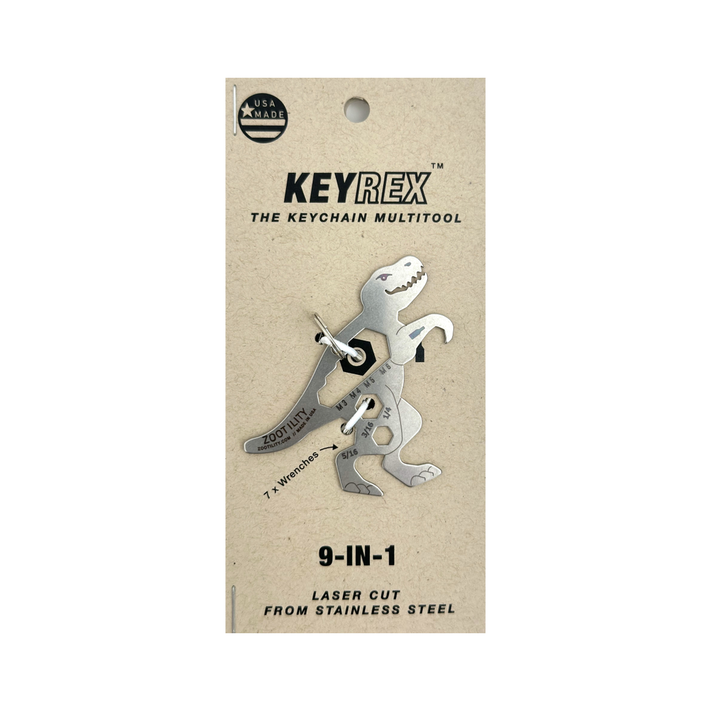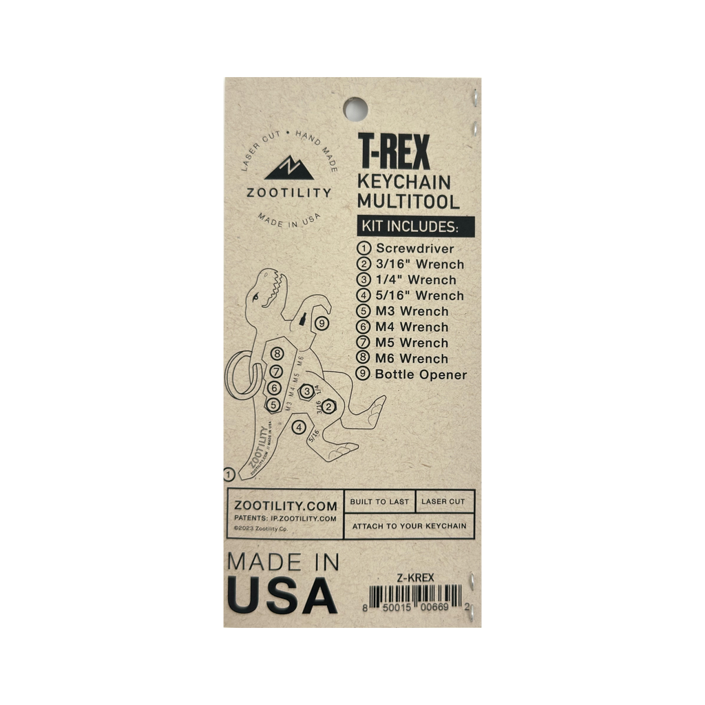 Discover the ultimate convenience with Zootility's Key-Rex™ 9-in-1 Keychain Mult-Tool. This compact yet highly functional tool is designed for those who value practicality and efficiency. As part of our commitment to responsible manufacturing, this product is made to last, reflecting our ethos of quality and sustainability. Crafted with care in our Maine workshop, this Key-Rex™ tool is more than just a keychain - it's a testament to the innovative spirit of Zootility. Join us in reimagining everyday products, made better.