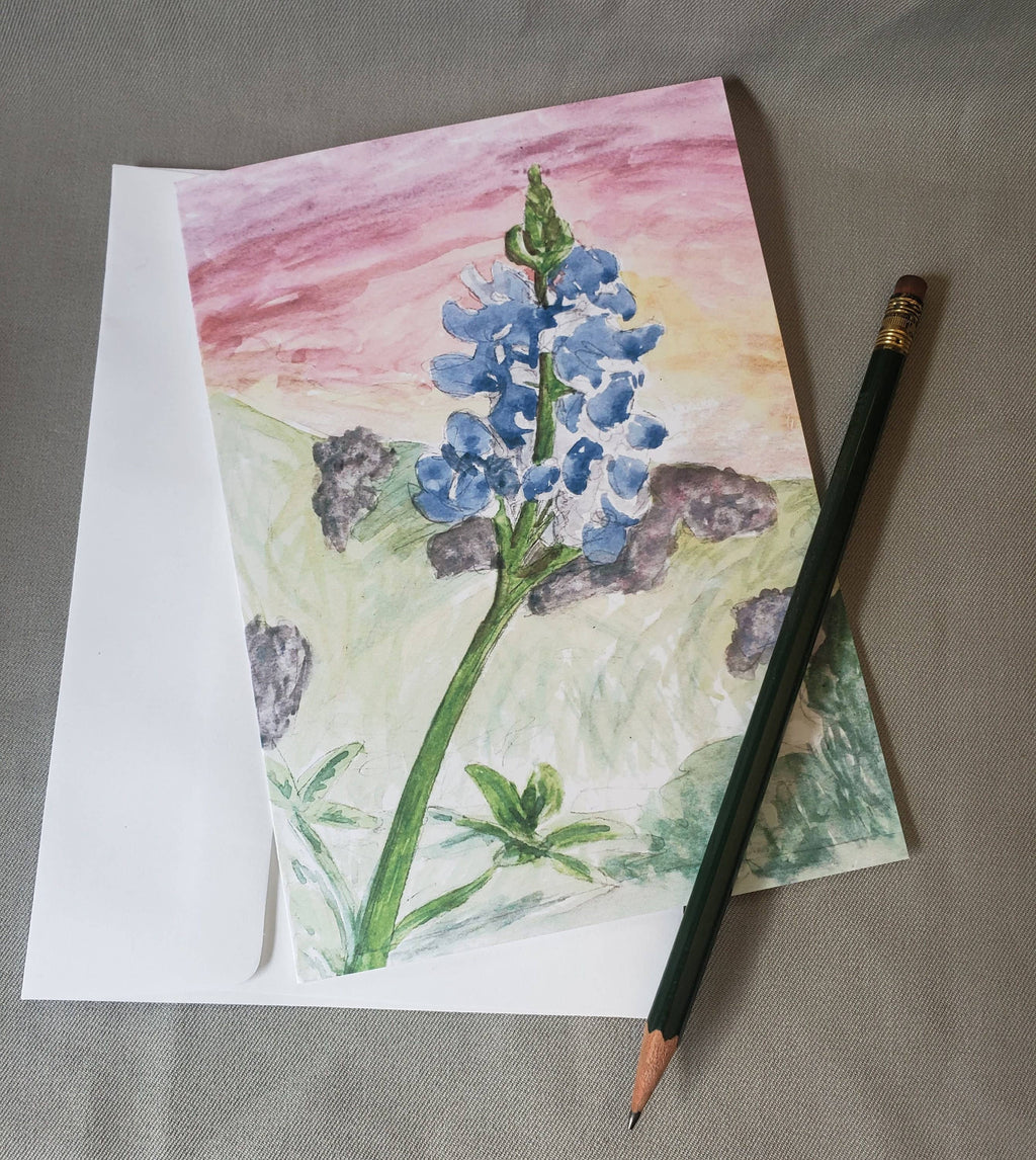This note card set, featuring a stunning watercolor painting depicting the Bluebonnet (the official state flower of Texas!) is a great way to correspond with loved ones near and far.