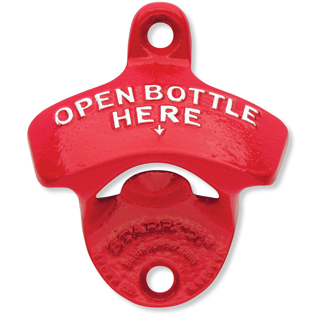 This red powder coated classic STARR "X" branded bottle opener has been in production since around 1930. As the original patent and trademark holder, our bottle openers ooze of authenticity. Packaged in an open-faced box with retro graphics. Mounting screws included.