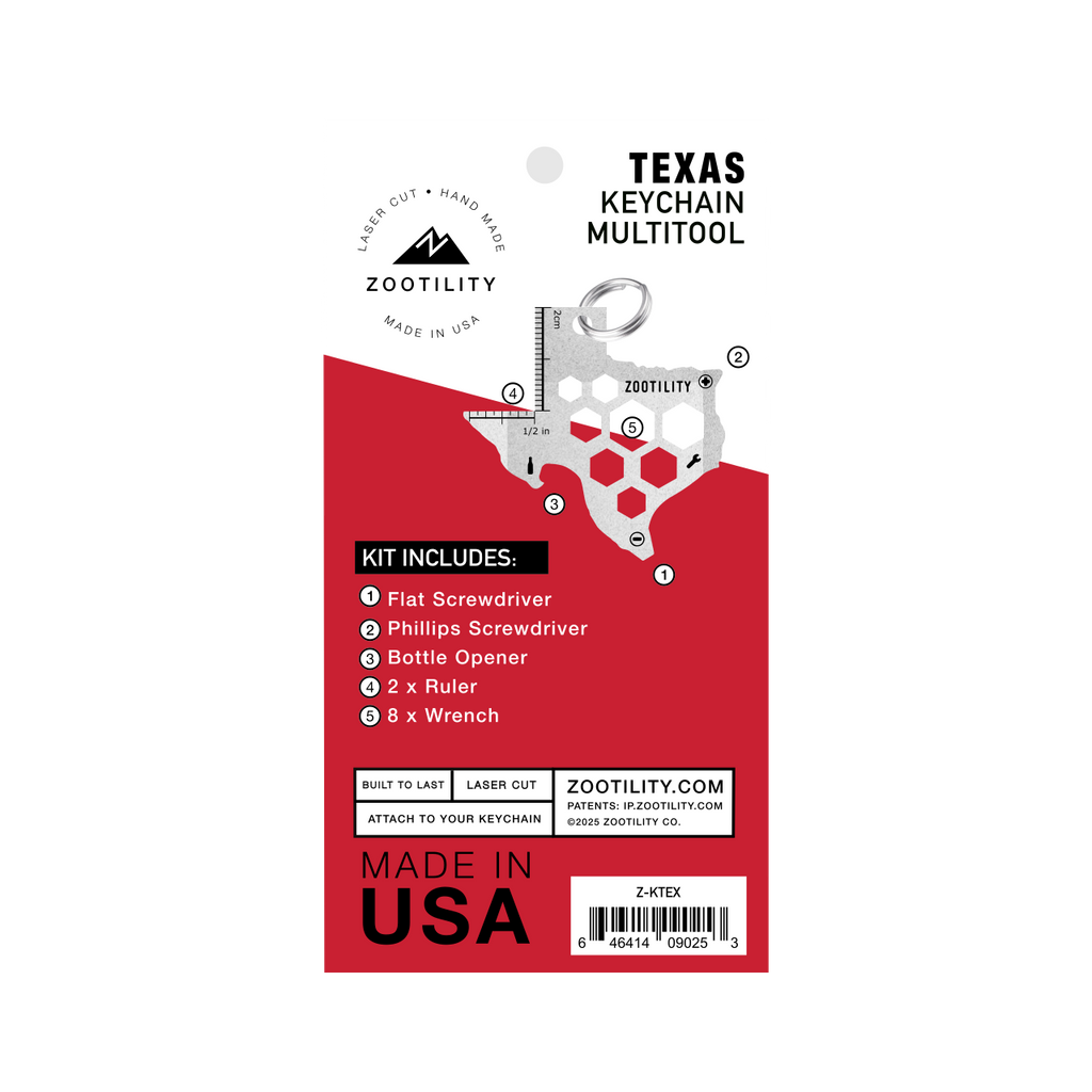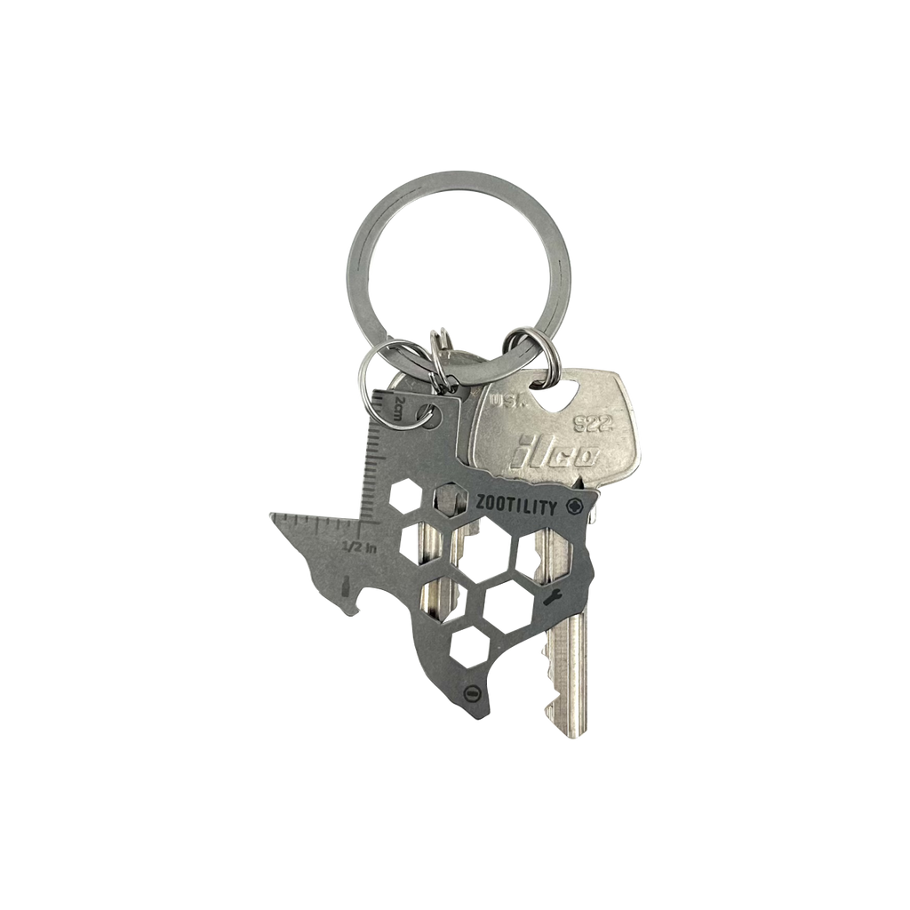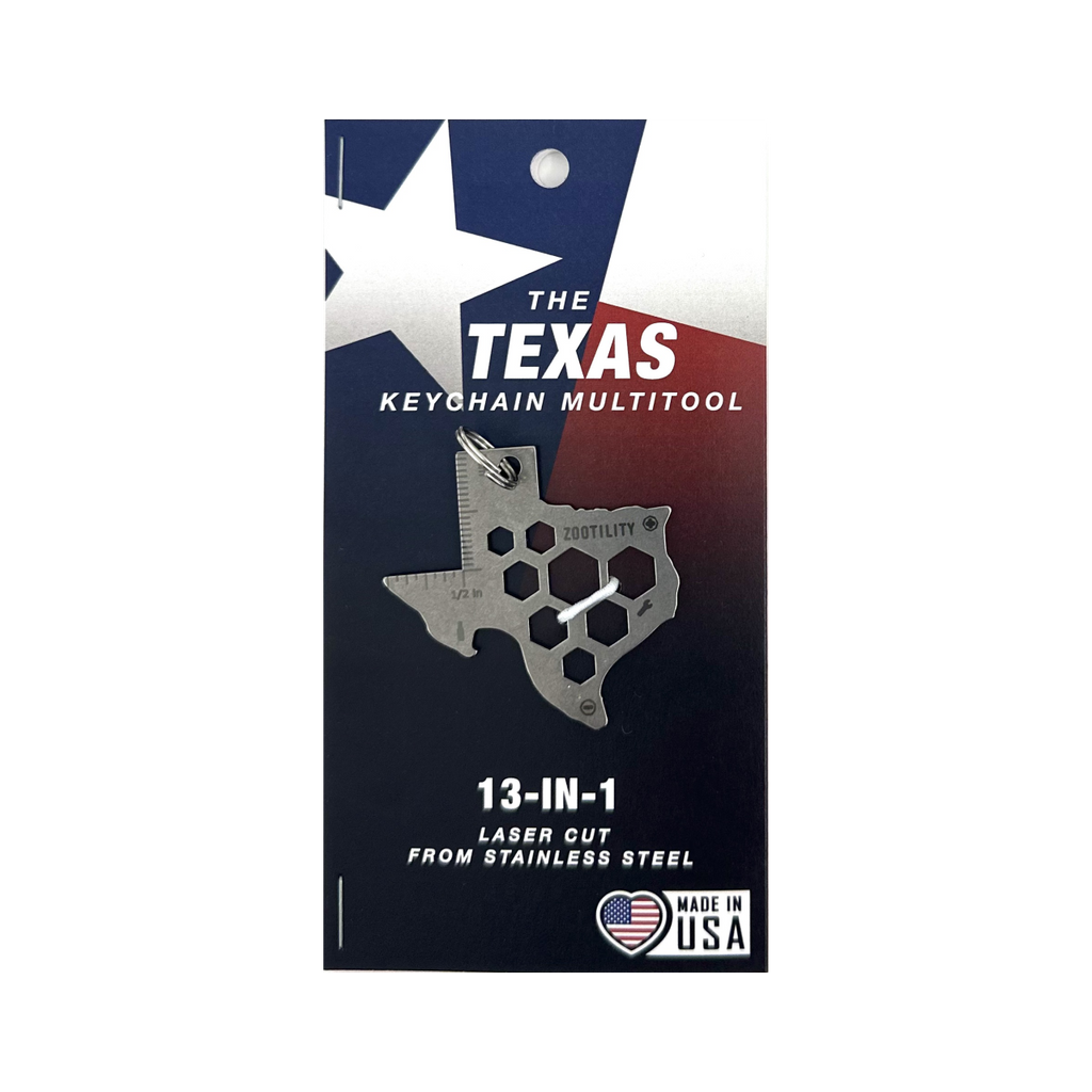 The Texas 13-in-1 Keychain Multi-Tool is a durable, versatile accessory from Zootility, perfect for everyday adventurers who value practicality. Made in the USA with precision and care, it will assist you in a variety of daily tool needs.